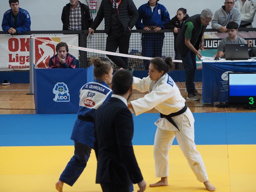 El camino de Claudia Lora, la otra representante senior del equipo, fue muy distinto. La actual campeona de Asturias arrancó con mal pie ante Ferreras y sufrió una luxación en un codo previamente lesionado la temporada pasada, lo que condicionó su competición. Aun así, no se vino abajo y mostró carácter en la repesca: ganó con autoridad a una rival gijonesa imponiéndose por ippon y terminó alcanzando el bronce tras un nuevo enfrentamiento entre compañeras, esta vez contra Sara Zapatero. “Cuando se enfrentan entre ellas nunca se sabe qué puede pasar, pero Claudia sacó su carácter de veterana. Y aunque Sara no subió al podio, me quedo muy contento con su actuación”, destacaba su técnico.