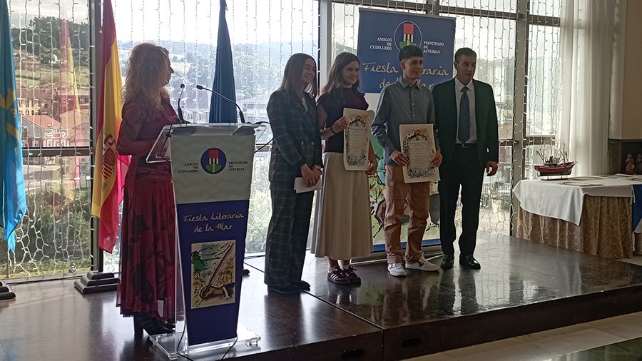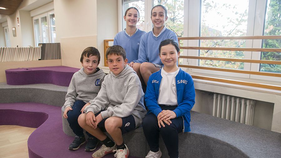 Inés y Esther, de (1º ESO), y Carmen, Ángel y Marcos (de 5º EP) re...