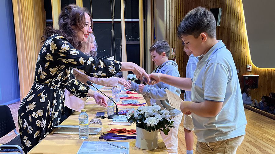 Inés y Esther, de (1º ESO), y Carmen, Ángel y Marcos (de 5º EP) re...